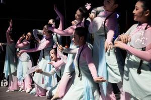 (260209) -- BUENOS AIRES, 9 febrero, 2026 (Xinhua) -- Imagen del 8 de febrero de 2026 de bailarinas realizando una exhibición coreográfica, durante las celebraciones del Año Nuevo chino, en la Plaza Parques Nacionales Argentinos, en la ciudad de Buenos Aires, capital de Argentina. La llegada del Año Nuevo chino en el calendario lunar, el próximo día 17 de febrero, reunió el pasado domingo en la ciudad de Buenos Aires a cientos de personas de distintas edades y nacionalidades en un colorido Festival cargado de milenarias tradiciones y expresiones artísticas de China, que año tras año ganan mayor relevancia e interés en el país suramericano. (Xinhua/Martín Zabala) (mz) (rtg) (ah) (vf)