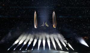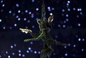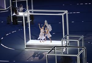(260206) — MILAN, 6 febrero, 2026 (Xinhua) — Una artista se presenta durante la ceremonia de inauguración de los Juegos Olímpicos de Invierno Milán-Cortina 2026 en el Estadio Olímpico San Siro, en Milán, Italia, el 6 de febrero de 2026. (Xinhua/Li Jing) (jg) (da) (vf)