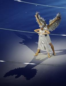 (260206) — MILAN, 6 febrero, 2026 (Xinhua) — Un dueto sobre la fábula de Eros y Psique es presentado durante la ceremonia de inauguración de los Juegos Olímpicos de Invierno Milán-Cortina 2026 en el Estadio Olímpico San Siro, en Milán, Italia, el 6 de febrero de 2026. (Xinhua/Li Ming) (rtg) (ra) (vf)