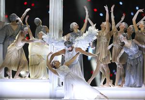 (260206) — MILAN, 6 febrero, 2026 (Xinhua) — Un dueto sobre la fábula de Eros y Psique es presentado durante la ceremonia de inauguración de los Juegos Olímpicos de Invierno Milán-Cortina 2026 en el Estadio Olímpico San Siro, en Milán, Italia, el 6 de febrero de 2026. (Xinhua/Wang Kaiyan) (rtg) (ra) (vf)