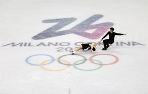 (260206) — MILAN, 6 febrero, 2026 (Xinhua) — Han Cong (d) y Sui Wenjing, de China, se presentan durante el programa corto de patinaje en parejas de la prueba por equipos de patinaje artístico de los Juegos Olímpicos de Invierno Milán-Cortina 2026, en Milán, Italia, el 6 de febrero de 2026. (Xinhua/Cheng Min) (jg) (da) (vf)