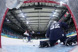(260206) — MILAN, 6 febrero, 2026 (Xinhua) — La guardameta Alice Philbert, de Francia, detiene una anotación durante el partido del Grupo B de la ronda preliminar femenina entre Francia y Japón de hockey sobre hielo de los Juegos Olímpicos de Invierno Milán-Cortina 2026, en Milán, Italia, el 6 de febrero de 2026. (Xinhua/Zhang Cheng/Pool) (rtg) (ra) (vf)