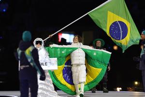 (260207) — MILAN, 7 febrero, 2026 (Xinhua) — Imagen del 6 de febrero de 2026 de la delegación de Brasil desfilando hacia el Estadio Olímpico San Siro durante la ceremonia de inauguración de los Juegos Olímpicos de Invierno Milán-Cortina 2026, en Milán, Italia. (Xinhua/Wang Kaiyan) (oa) (da)
