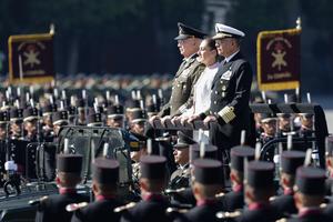 (260209) -- CIUDAD DE MEXICO, 9 febrero, 2026 (Xinhua) -- La presidenta mexicana, Claudia Sheinbaum (c), reacciona durante los actos conmemorativos por el 113 Aniversario de la Marcha de la Lealtad, en el Zócalo de la Ciudad de México, capital de México, el 9 de febrero de 2026. (Xinhua/Francisco Cañedo) (fc) (rtg) (ah) (vf)