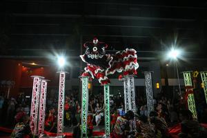 (260210) -- YANGON, 10 febrero, 2026 (Xinhua) -- Imagen del 9 de febrero de 2026 de bailarines de la danza del león realizando una presentación durante la celebración del próximo Año Nuevo chino, en Yangón, Myanmar. (Xinhua/Myo Kyaw Soe) (oa) (ah) (vf)