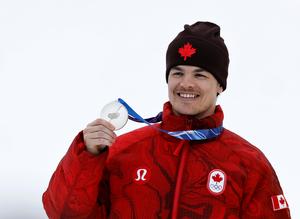 (260212) — LIVIGNO, 12 febrero, 2026 (Xinhua) — El medallista de plata, Mikael Kingsbury, de Canadá, posa durante la ceremonia de premiación de moguls masculino de esquí acrobático en los Juegos Olímpicos de Invierno Milán-Cortina 2026, en Livigno, Italia, el 12 de febrero de 2026. (Xinhua/Wang Peng) (jg) (ah) (vf)