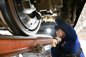 (260129) -- BEIJING, 29 enerp, 2026 (Xinhua) -- Trabajadores llevan a cabo trabajo de mantenimiento en una base de trenes...