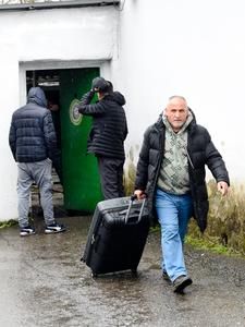 (260303) -- ASTARA, 3 marzo, 2026 (Xinhua) -- Imagen del 1 de marzo de 2026 de un hombre evacuado desde Irán sacando su equipaje por la puerta de hierro del cruce fronterizo de Astara, en el sur de Azerbaiyán. En días recientes, el cruce fronterizo de Astara, en la frontera sur de Azerbaiyán con Irán, se ha convertido en una importante ruta terrestre para los evacuados de Irán. (Xinhua/Chen Junfeng) (ah) (ra) (ce)