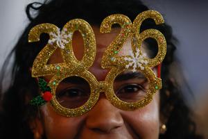 (260101) -- CARACAS, 1 enero, 2026 (Xinhua) -- Una mujer asiste a una fiesta de Año Nuevo en una plaza,...