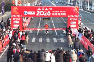 (260101) -- BEIJING, 1 enero, 2026 (Xinhua) -- Personas participan en la Carrera de Año Nuevo, en Yinchuan, en la...