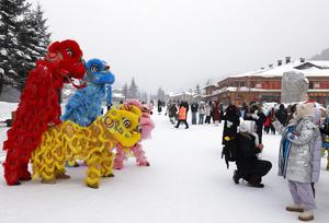 (251231) -- BEIJING, 31 diciembre, 2025 (Xinhua) -- Turistas observan una presentación de la danza de león en un punto...