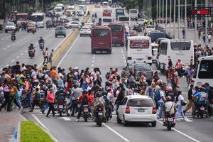 (251231) -- CARACAS, 31 diciembre, 2025 (Xinhua) -- Personas cruzan una avenida durante el último día del año, en Caracas,...