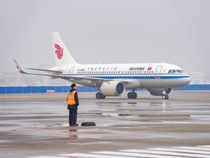 (251231) -- CHENGDU, 31 diciembre, 2025 (Xinhua) -- El vuelo CA4182 de Air China arriba al Aeropuerto Internacional Shuangliu de...