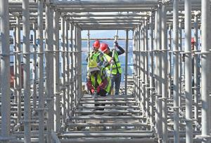 (251231) -- BEIJING, 31 diciembre, 2025 (Xinhua) -- Imagen del 30 de diciembre de 2025 de trabajadores transportando andamios en...