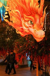 (251230) -- NANJING, 30 diciembre, 2025 (Xinhua) -- Ciudadanos observan decoraciones de linternas en el área escénica del Templo de...