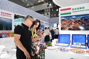 (250521) -- XI'AN, 21 mayo, 2025 (Xinhua) -- Visitantes se informan sobre los productos tayikos durante la Novena Exposición Internacional...
