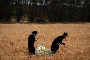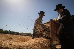 (250521) -- JERUSALEN, 21 mayo, 2025 (Xinhua) -- Imagen del 20 de mayo de 2025 de judíos ultraortodoxos cosechando trigo...