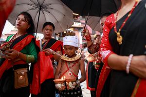 (250817) -- BHAKTAPUR, 17 agosto, 2025 (Xinhua) -- Imagen del 16 de agosto de 2025 de personas participando en un...