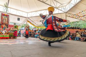 (250824) -- LHASA, 24 agosto, 2025 (Xinhua) -- Un artista participa en las presentaciones de las óperas tibetanas, en Lhasa,...