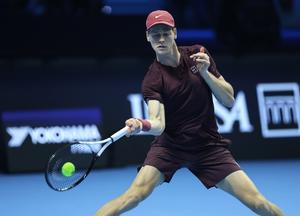 (251116) -- TURIN, 16 noviembre, 2025 (Xinhua) -- Imagen del 15 de noviembre de 2025 de Jannik Sinner devolviendo la...