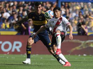 (251109) -- BUENOS AIRES, 9 noviembre, 2025 (Xinhua) -- El jugador Lautaro Di Lollo (i), de Boca Juniors, disputa el...