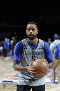 (251031) -- CIUDAD DE MEXICO, 31 octubre, 2025 (Xinhua) -- El jugador D´Angelo Russell, de Dallas Mavericks, participa en una...