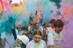 (250824) -- JURMALA, 24 agosto, 2025 (Xinhua) -- Personas participan en la Carrera de Colores, en Jurmala, Letonia, el 24...