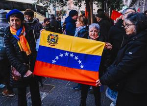 (260104) -- NAPOLES, 4 enero, 2026 (Xinhua) -- Imagen del 3 de enero de 2026 de personas sosteniendo una bandera...