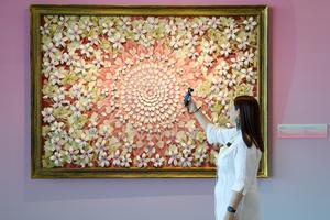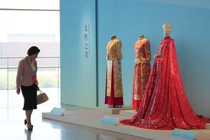 (251013) -- BEIJING, 13 octubre, 2025 (Xinhua) -- Una mujer visita "El Patrimonio Florece, las Mujeres Brillan", una exposición especial...