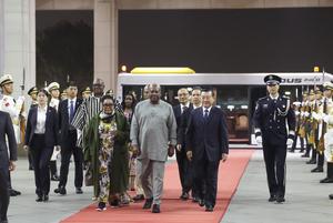 (251011) -- BEIJING, 11 octubre, 2025 (Xinhua) -- El presidente de Ghana, John Dramani Mahama, llega a Beijing, capital de...