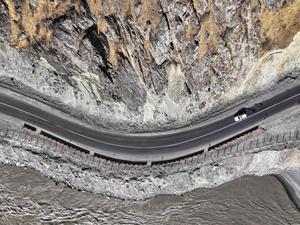 (251011) -- DUSAMBE, 11 octubre, 2025 (Xinhua) -- Vista aérea tomada con un dron de parte del tramo de la...