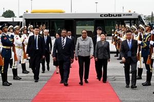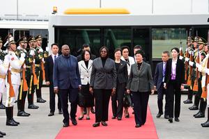 (251011) -- BEIJING, 11 octubre, 2025 (Xinhua) -- La primera ministra de Mozambique, María Benvinda Levi, llega a Beijing, capital...