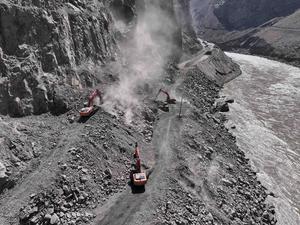 (251011) -- DUSAMBE, 11 octubre, 2025 (Xinhua) -- Excavadoras operan en el sitio de construcción del tramo de la segunda...
