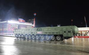 (251011) -- PYONGYANG, 11 octubre, 2025 (Xinhua) -- Imagen del 10 de octubre de 2025 de un desfile militar para...