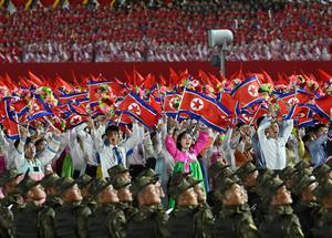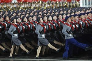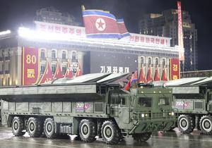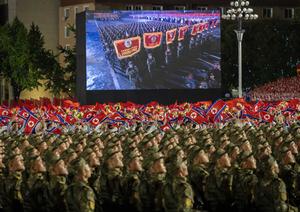 (251011) -- PYONGYANG, 11 octubre, 2025 (Xinhua) -- Imagen del 10 de octubre de 2025 de un desfile militar para...