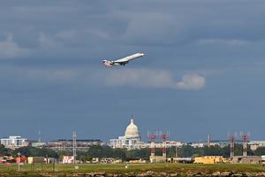(251011) -- ARLINGTON, 11 octubre, 2025 (Xinhua) -- Imagen del 10 de octubre de 2025 de un avión despegando del...