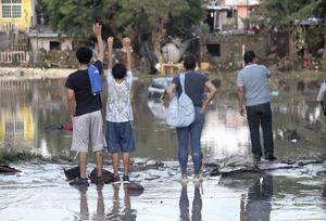 (251011) -- POZA RICA, 11 octubre, 2025 (Xinhua) -- Imagen del 10 de octubre de 2025 de personas intentando cruzar...