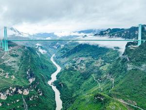 GUIYANG, 28 sep (Xinhua) -- El puente más alto del mundo abrió al tráfico la mañana de hoy domingo luego...