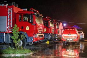 (250928) -- LONGXI, 28 septiembre, 2025 (Xinhua) -- Imagen del 27 de septiembre de 2025 de vehículos de rescate vistos...