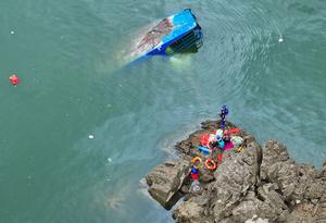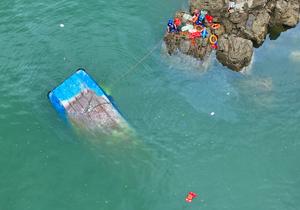 (250505) -- QIANXI, 5 mayo, 2025 (Xinhua) -- Rescatistas llevan a cabo operaciones de búsqueda y rescate después del accidente...
