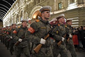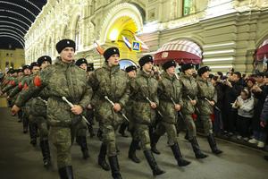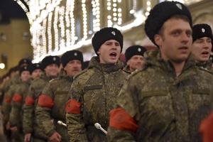 (250504) -- MOSCU, 4 mayo, 2025 (Xinhua) -- Imagen del 3 de mayo de 2025 de militares vistos en camino...