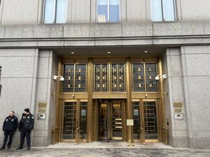 (260105) -- NUEVA YORK, 5 enero, 2026 (Xinhua) -- Imagen tomada con un teléfono móvil del exterior del tribunal, donde...