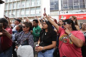 (250919) -- CIUDAD DE MEXICO, 19 septiembre, 2025 (Xinhua) -- Un hombre reacciona durante una ceremonia conmemorativa por las víctimas...