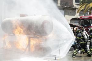 (250919) -- CIUDAD DE MEXICO, 19 septiembre, 2025 (Xinhua) -- Bomberos participan en el Segundo Simulacro Nacional, en la Ciudad...