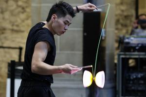 (250924) -- CIUDAD DE MEXICO, 24 septiembre, 2025 (Xinhua) -- Imagen del 23 de septiembre de 2025 de un acróbata...