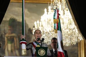 (250916) -- CIUDAD DE MEXICO, 16 septiembre, 2025 (Xinhua) -- Imagen del 15 de septiembre de 2025 de la presidenta...