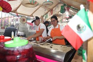 (250916) -- OAXACA, 16 septiembre, 2025 (Xinhua) -- Imagen del 15 de septiembre de 2025 de vendedores ambulantes ofreciendo alimentos,...