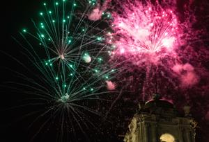 (250916) -- OAXACA, 16 septiembre, 2025 (Xinhua) -- Imagen del 15 de septiembre de 2025 de fuegos artificiales en la...