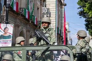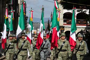 (250916) -- OAXACA, 16 septiembre, 2025 (Xinhua) -- Elementos del Ejército mexicano participan durante el Desfile Cívico-Militar con motivo del...