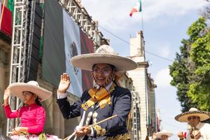 (250916) -- OAXACA, 16 septiembre, 2025 (Xinhua) -- Personas observan el Desfile Cívico-Militar con motivo del 215 Aniversario de la...